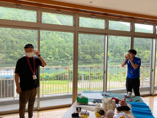 ワークショップが始まった最初に、私や名人ら大人たちにまったく話せない、目を合わせられないのはもちろんのこと、時間が経ってもいつもよりコミュニケーションが少なかったように思います。