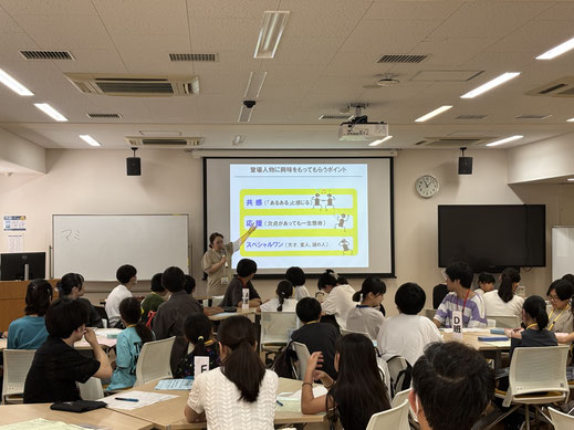 1日目は表現学科の杉原先生から、「ストーリーとして伝えるおもしろさと、そのコツ」について、カードゲームやワークシートで体験的に学びました。
