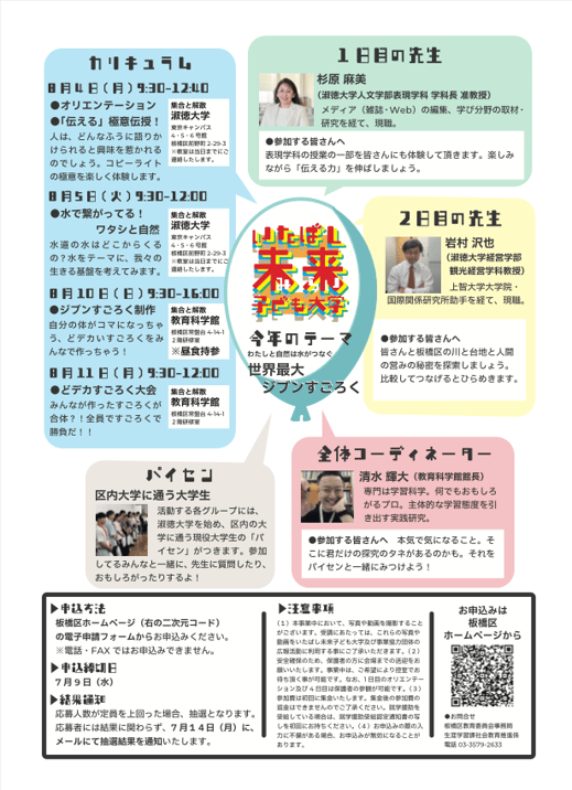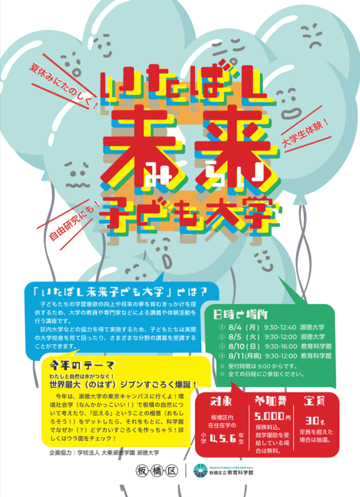 さて、先日板橋区では、夏休みの恒例となった「いたばし未来子ども大学」というイベントが開催されました。
