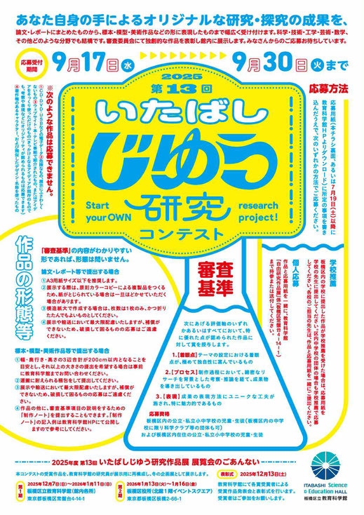 板橋区立教育科学館では、毎年恒例の重点イベントとして、夏休みの自由研究を応募してもらうコンテスト「自由研究作品コンテスト」を開催しています。