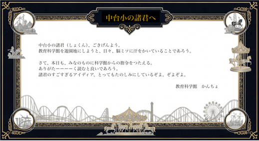 下記のような指令書が、授業ごとに科学館カンチョーから届きます。