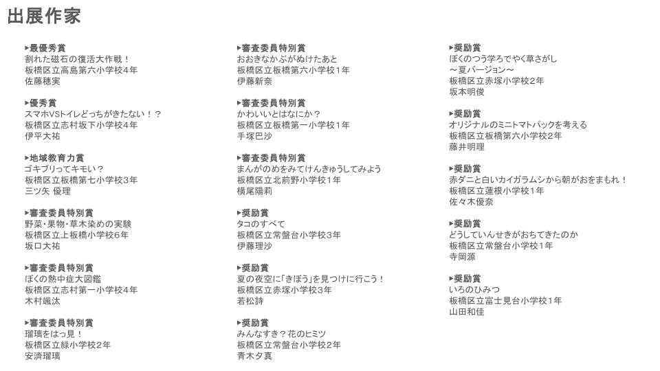 以前ご紹介した、板橋区立教育科学館での「じゆう研究作品コンテスト」(記事はコチラから)。