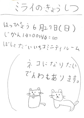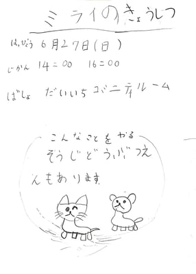 新たな可能性の拡がる試みではあったが、やはりオンラインでは現実空間を代替することはできない。6月には久しぶりに顔を合わせての活動ができた。それぞれの「授業」を紹介してもらいながら、簡単にリハーサルもしてみる。しっかりチラシもつくって本番に向けてラストスパート。