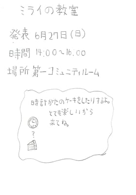 《放課後の学校クラブ》では、不定期で「もうひとつの学校」を発表する機会を設けてきたのだが、ここ1年以上にわたって実現することができないでいた。そのため、すぐにでも開催したいところではあるが、ここはゆとりを持って6月実施の段取りへ。日程が決まったらテーマの検討。既につくり始めている「ほうき犬」「ねこになりたい電話」「とけいがたのケーキ」などをもとに案を出していく。